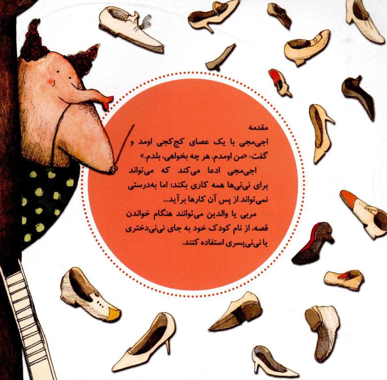 برشی از کتاب: نی نی دختری یک تخم مرغ داشت. آهسته گفت: «کاشکی می شد جوجه بشی؛ یک جوجه ی اشی مشی.» یکدفعه اجی مجی با یک عصای کج کجی اومد و گفت: «من اومدم. هر چی بخواهی، بلدم. همین الآن با این عصا، یک جوجه می دم به شما.» اجی مجی عصایش را تکان داد و گفت: «اجی مجی... اجی مجی...» تخم مرغ شکست ترق تاراق. از توی اون بیرون پرید یک خروس بداخلاق. نی نی دختری از نوک خروسه ترسید. دوید و دوید. به اتاق رسید. اجی مجی چه کار کرد؟ یواشکی فرار کرد...