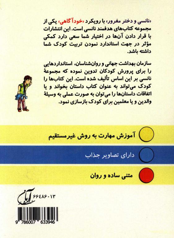سازمان بهداشت جهانی برای پرروش کودکان مهارتهای استانداردی را تدوین کرده است. کتاب حاضر یکی از همین مهارتها را به طور غیرمستقیم آموزش میدهد و سایر مهارتها نیز در دیگر کتابهای همین مجموعه با عنوان «ماجراهای نانسی» آموزش داده میشوند. موضوع کتاب حاضر غرور است و آموزش رویکردخودآگاهی را هدف قراردادهاست. کتاب با تصویرهای کودک پسند و زبان ساده میکوشد به طور عملی کودکان را با نمونههای غرور مواجه سازد و او را نسبت به چگونگی این پدیده آگاه کند.