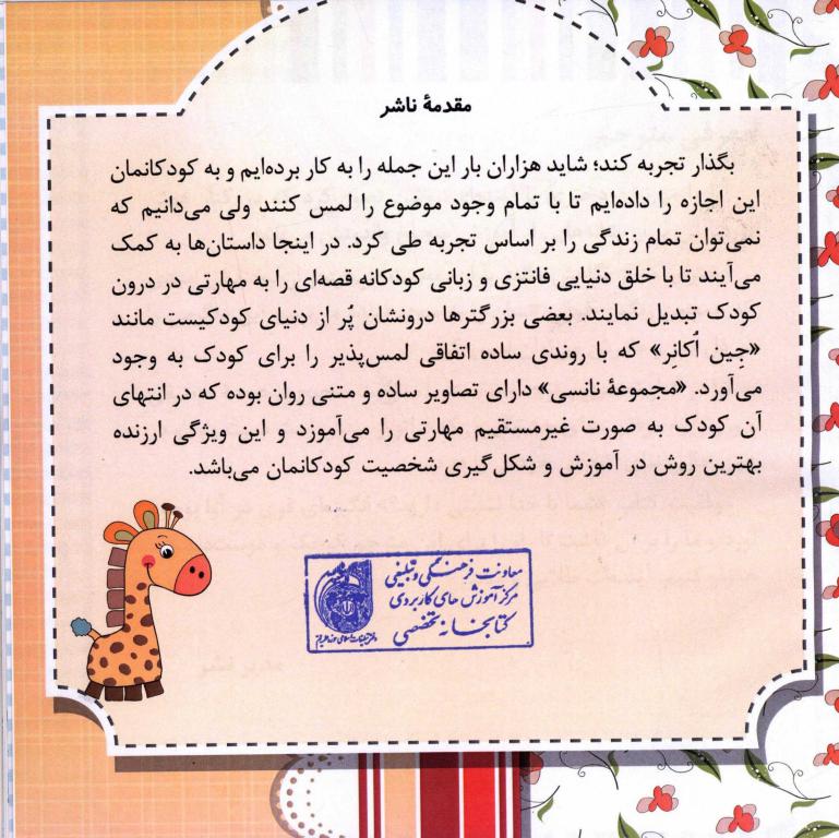 پرورش صحیح کودکان با آموزش مهارتهایی به آنان میسر خواهد بود. کتاب حاضر یکی از مهارتهای رفتاری لازم را به طور غیرمستقیم آموزش میدهد. سایر مهارتها نیز در دیگر کتابهای همین مجموعه با عنوان «ماجراهای نانسی» آموزش داده میشوند. این کتاب در داستانی کودکانه، با موضوع بسیار سادۀ روز اول مدرسه، رویکرد مقابله با استرس را درپیش گرفته است و میکوشد به طور عملی و غیر مستقیم کودک را با این پدیده مواجهه و مهیای پذیرش این قضیه کند.