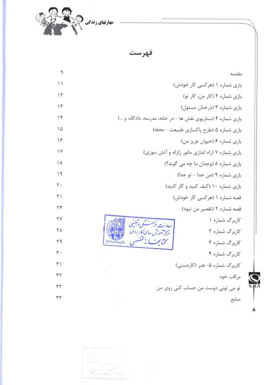 مهارت‌های زندگی را می‌توان با روش‌های ساده و قابل فهم، در حین بازی و سرگرمی، به کودکان آموخت. مجموعۀ «مهارت‌های زندگی» شامل 10 جلد کتاب است که هر جلد به یکی از مهارت‌های زندگی می‌پردازد. جلدهشتم این مجموعه به مهارت «مسئولیت‌پذیری» می‌پردازد.10 بازی، پنج کاربرگ (نقاشی، کاردستی، خلاقیت، حل‌کردنی و مهارت‌های نوشتاری)، دو داستان و دو شعر در این کتاب آمده‌اند که همگی می‌کوشند مهارت مسئولیت‌پذیری را به عنوان عنصری برجسته در موفقیت کودک تقویت کنند.