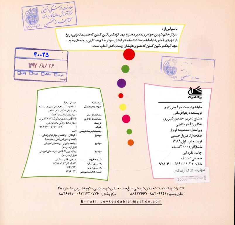 کتاب ما با هم درست حرف می زنیم،شیوهای خلاق در آموزش مهارتهای زندگی، برای ۴ تا ۸ سالهها نوشتۀ زهرا فرمانی می باشد.این کتاب دیالوگ بین چندین بچه است که با هم همبازی و همسایه هستند. موضوعاتی که بین خودشان و در عالم کودکی پیش میاید را با هم حل میکنند و یا با هم بحث میکنند. این کتاب بهصورت مجموعه نوشته شده و در هر کتاب یکی از مشکلات دوران کودکی را حل میکنند. کتاب ما با هم درست حرف می زنیم یک کتاب تصویری مانند کتابهای کمیک است که در شانزده صفحه نوشته شده است. این کتاب بیشتر بر تصاویر و عکسها تمرکز کرده و بدون نگاهکردن به تصاویر تقریباً فهمیدن داستان سخت میشود. این کتاب برای کودکانی که بهتازگی شروع به خواندن کردهاند و یا در سالهای اولیه مقطع ابتدایی هستند مناسب و کاربردی است.