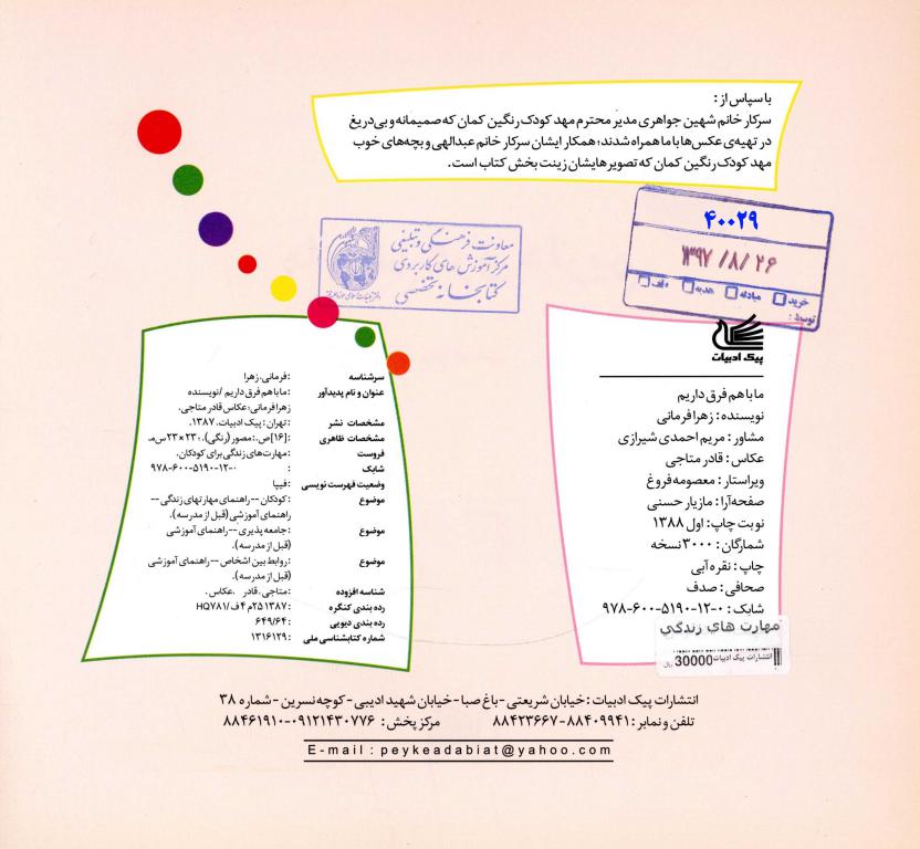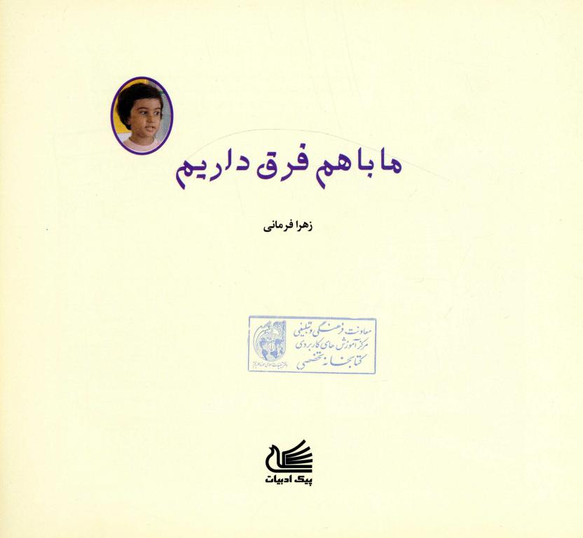 کتاب ما با هم فرق داریم،شیوهای خلاق در آموزش مهارتهای زندگی، برای ۴ تا ۸ سالهها نوشتۀ زهرا فرمانی می باشد.این کتاب دیالوگ بین چندین بچه است که با هم همبازی و همسایه هستند. موضوعاتی که بین خودشان و در عالم کودکی پیش میاید را با هم حل میکنند و یا با هم بحث میکنند. این کتاب بهصورت مجموعه نوشته شده و در هر کتاب یکی از مشکلات دوران کودکی را حل میکنند. کتاب ما با هم فرق داریم یک کتاب تصویری مانند کتابهای کمیک است که در شانزده صفحه نوشته شده است. این کتاب بیشتر بر تصاویر و عکسها تمرکز کرده و بدون نگاهکردن به تصاویر تقریباً فهمیدن داستان سخت میشود. این کتاب برای کودکانی که بهتازگی شروع به خواندن کردهاند و یا در سالهای اولیه مقطع ابتدایی هستند مناسب و کاربردی است.